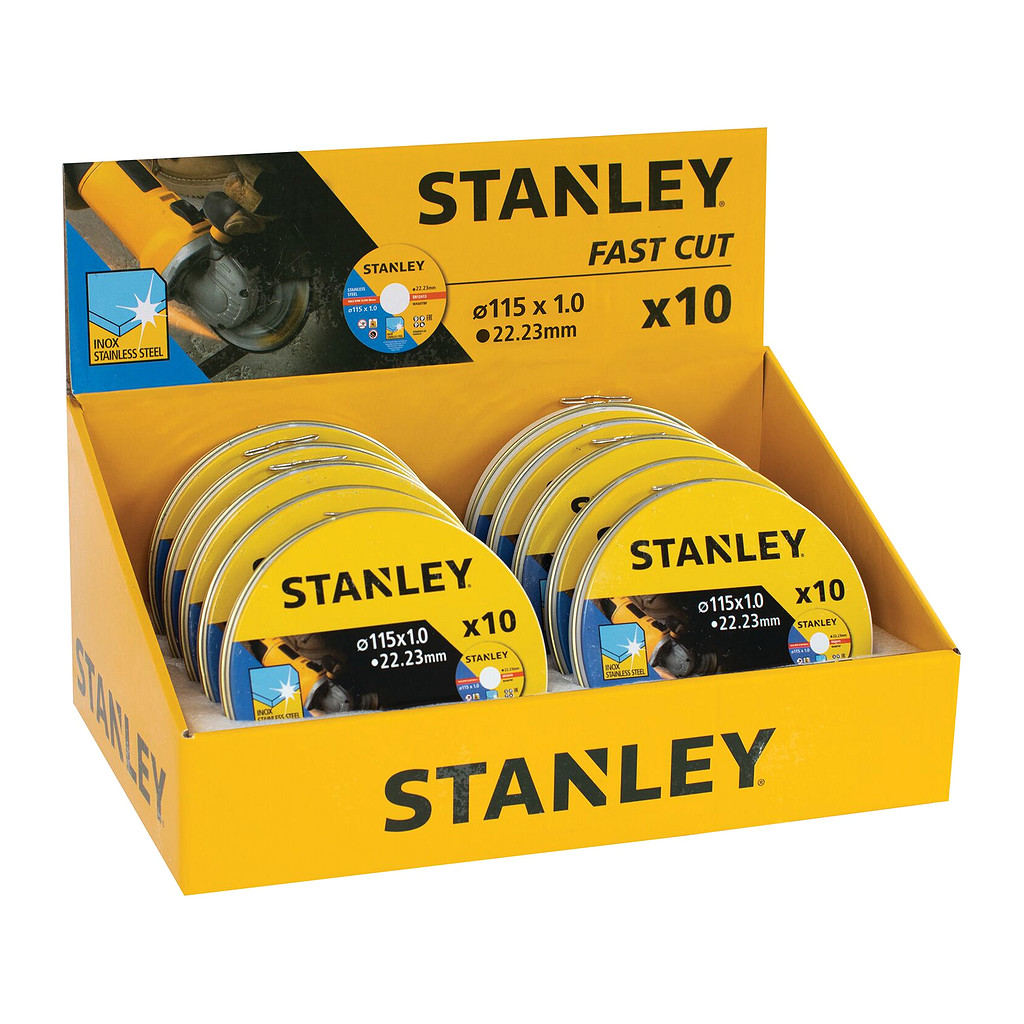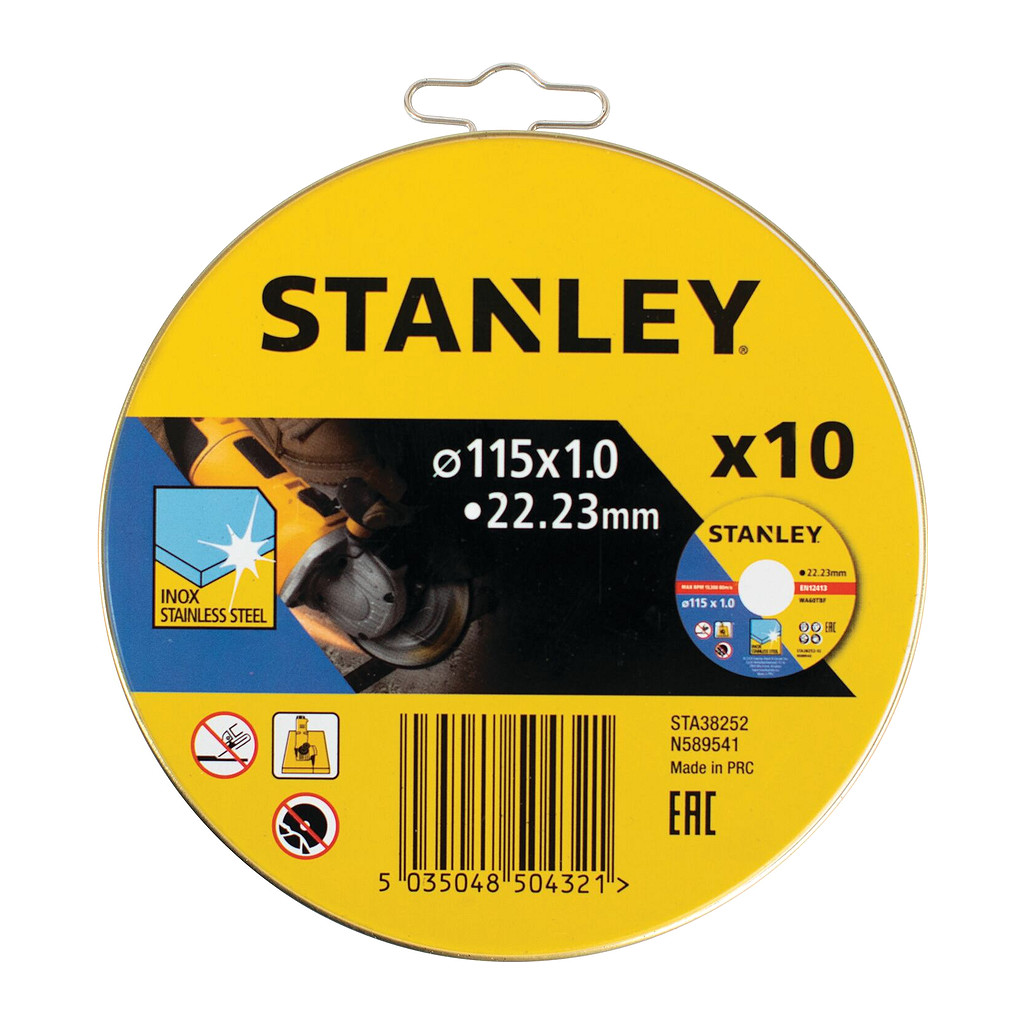 O Stanley STA38252 é um conjunto de 10 discos de corte de alto desempenho, especialmente concebidos para trabalhos em aço inoxidável. Com diâmetro de 115 mm, espessura de 1,0 mm e furo central de 22,23 mm, são ideais para rebarbadoras compatíveis com este padrão.