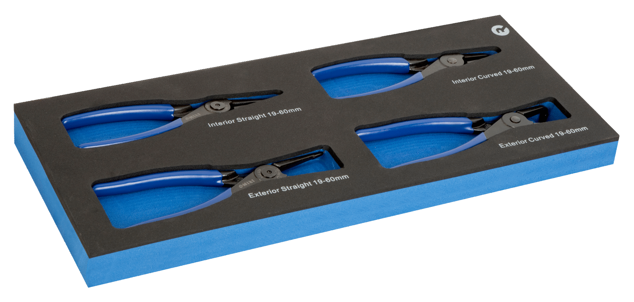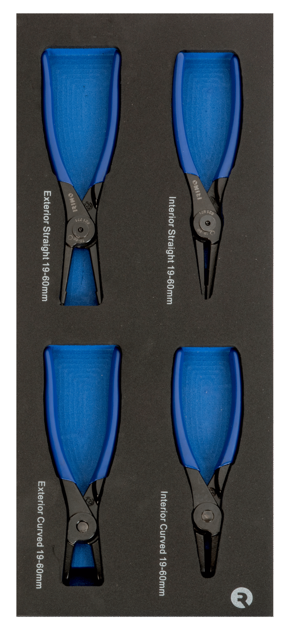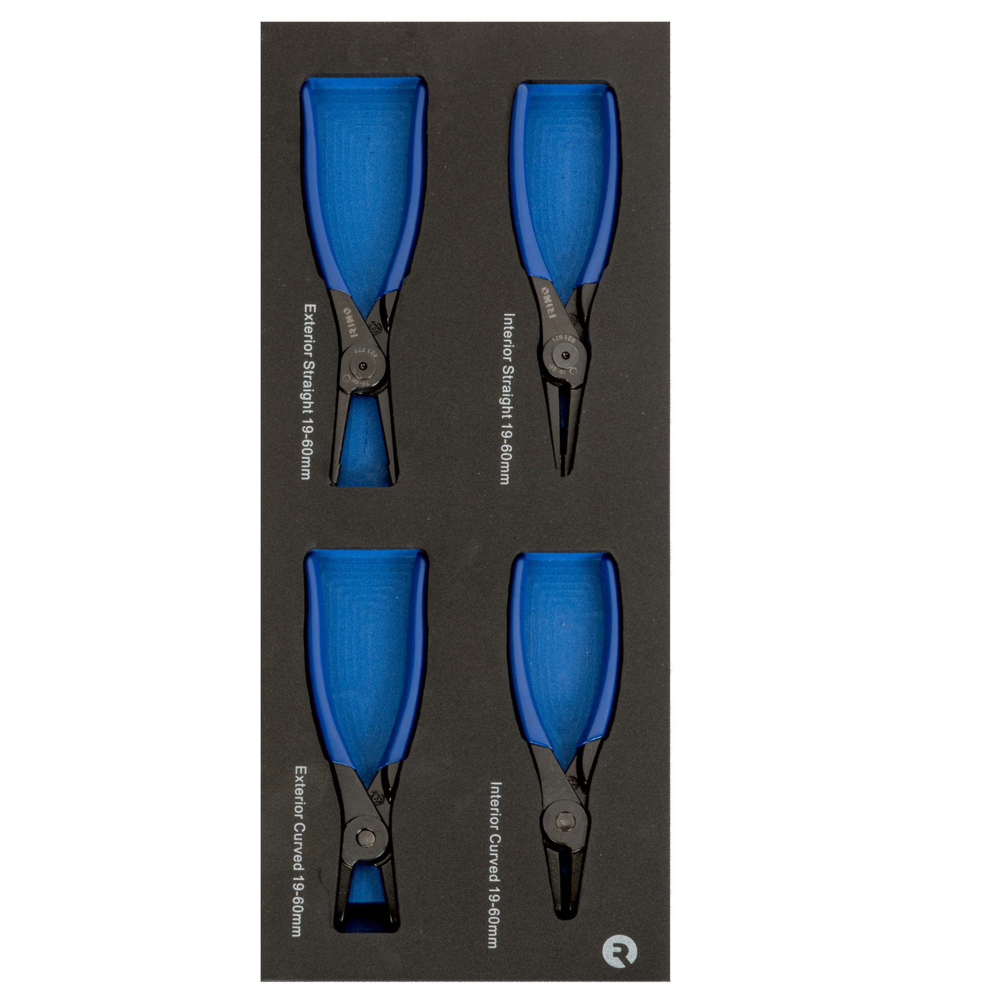 O conjunto inclui 4 alicates de precisão para anéis interiores e exteriores, adequados a diferentes aplicações de montagem e desmontagem de anéis elásticos. A espuma moldada de alta densidade mantém as ferramentas bem acondicionadas, evitando perdas e facilitando o acesso rápido durante o trabalho.