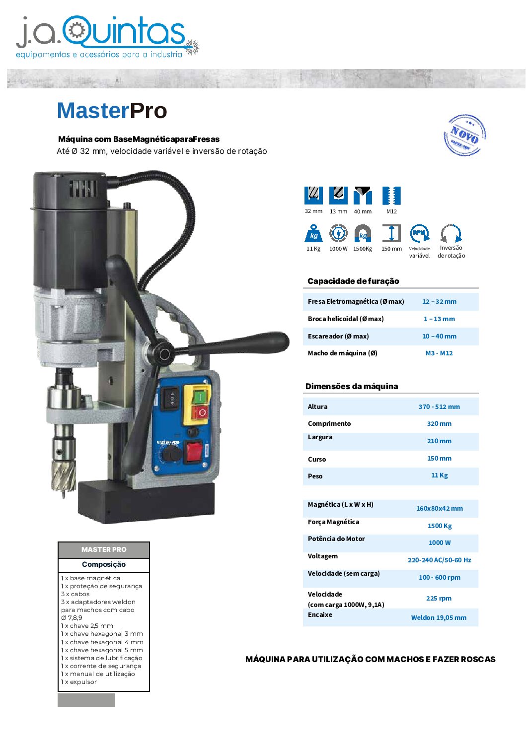 A MASTER PRO32 destaca-se pela combinação entre portabilidade, potência e segurança, sendo a escolha acertada para quem precisa de resultados rápidos e precisos em aço estrutural e perfurações industriais.