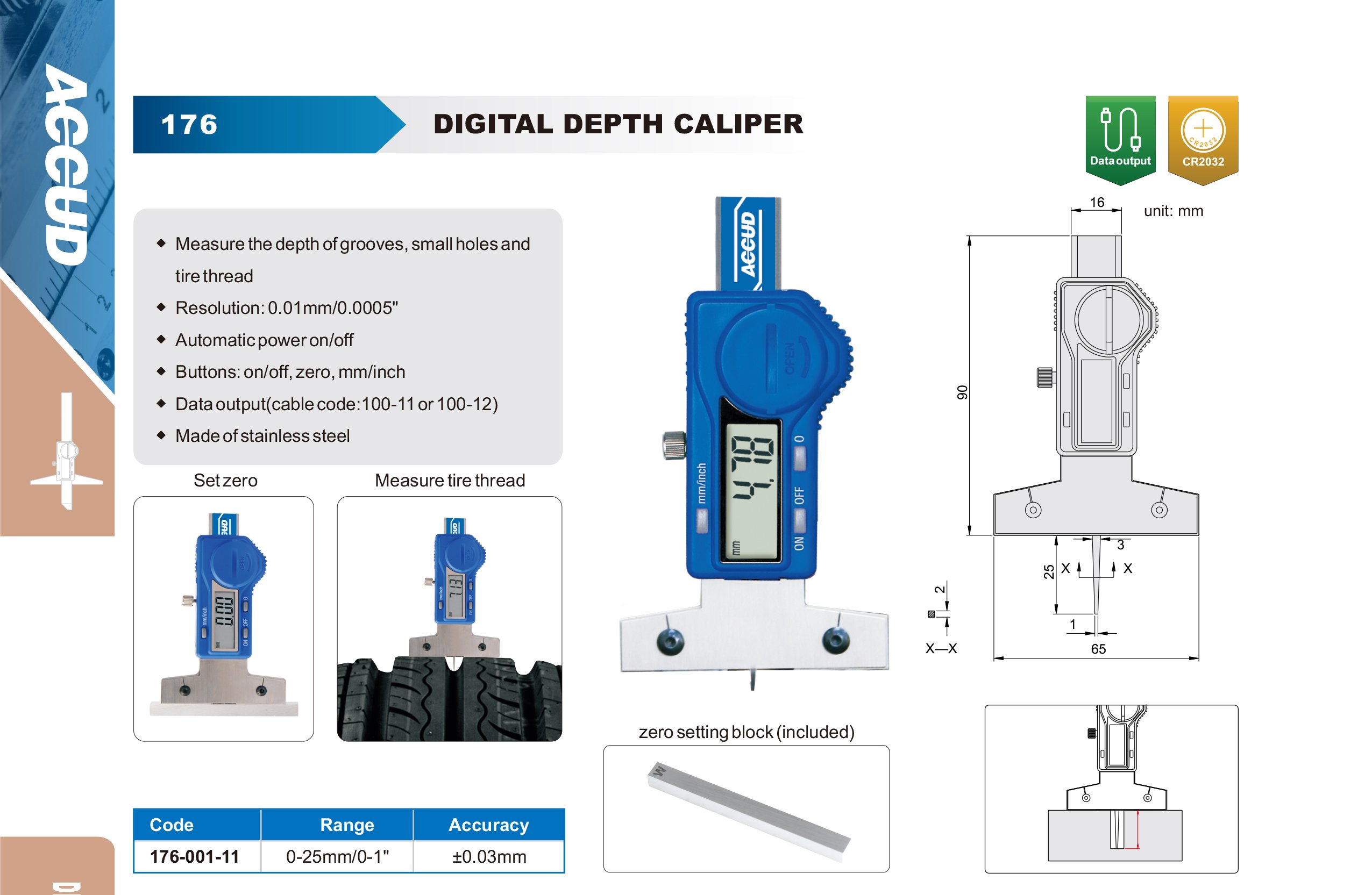 Fabricado em aço inoxidável endurecido, o ACCUD 176-001-11 apresenta elevada resistência ao desgaste e excelente estabilidade dimensional.