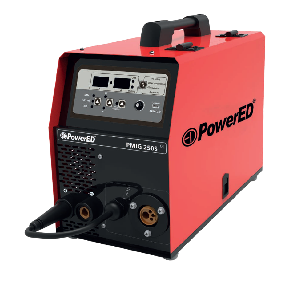 O PMIG250S é um soldador inverter MIG/MAG sinérgico profissional, concebido para proporcionar resultados consistentes em aplicações industriais e de oficina. Com tecnologia IGBT e alimentação a 230 V monofásico (50/60 Hz), garante alto desempenho e fiabilidade.